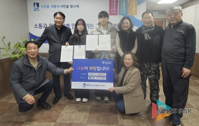 뉴스팍 배상미 기자 | 매탄3동 주민자치회는 지난 29일, 미래 주역으로 성장할 관내 청소년 2명에게 장학금을 수여했다.