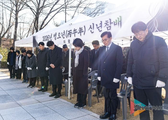 뉴스팍 배상미 기자 | 의왕시의회는 지난 1일 2026년 병오년(丙午年) 새해 첫날을 맞아 현충탑에서 순국선열과 호국영령의 숭고한 넋을 기리는 참배를 시작으로 공식 의정활동에 나섰다.