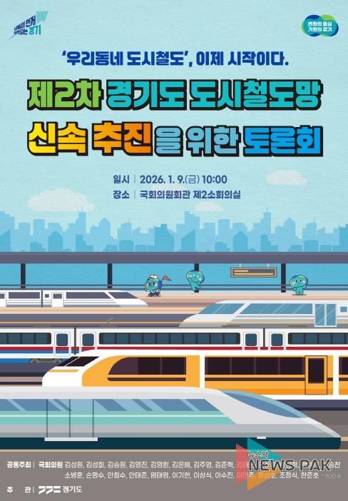 뉴스팍 배상미 기자 | 경기도가 ‘제2차 경기도 도시철도망 구축계획(′26~′35)’에 반영된 사업들의 실질적인 추진 방안 논의를 위해 9일 국회의원회관 제2소회의실에서 국회토론회를 연다.