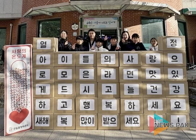 뉴스팍 배상미 기자 | 수원시 장안구 조원2동은 지난 6일 오전 10시, 한일열정태권도에서 원생과 학부모가 자발적으로 모아 마련한 라면 1,900개를 이웃에게 전달해 달라며 방문해 전달식을 가졌다.