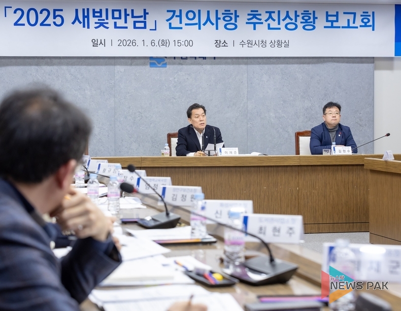 수원시는 지난 6일 시청 상황실에서 ‘2025 새빛만남 건의사항 추진상황 보고회’를 열고, 지난해 하반기 44개 동을 순회하며 접수한 시민 의견의 처리 현황을 집중 점검했다.