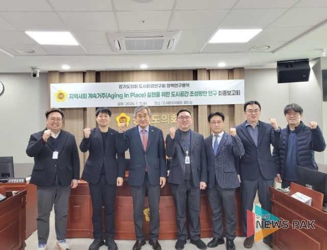 뉴스팍 배상미 기자 | 경기도의회 도시환경연구회(회장 김시용, 도시환경위원장)는 7일 오후 경기도의회 도시환경위원회 회의실에서 ‘지역사회 계속거주(Aging In Place) 실현을 위한 도시공간 조성방안 연구’에 관한 정책연구용역 최종보고회를 개최했다.