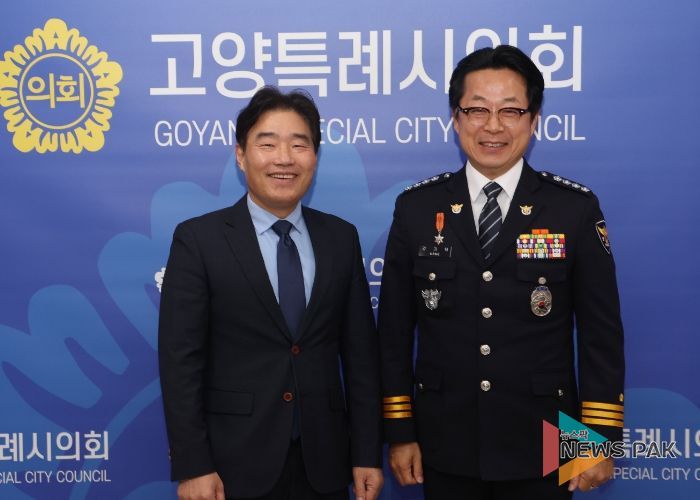 뉴스팍 배상미 기자 | 고양특례시의회 김운남 의장은 9일, 강기택 일산서부경찰서장과 면담을 갖고 대화동 킨텍스 지원부지 인근 원형육교 주변 보행환경 개선 방안에 대해 의견을 나눴다.