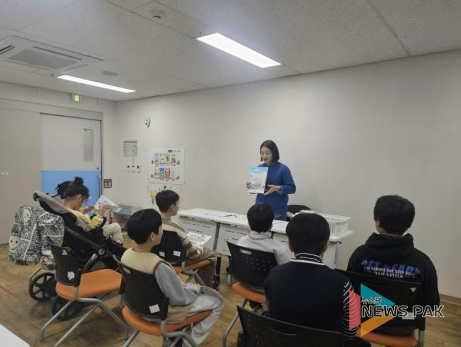 1~2월에는 호매실장애인종합복지관에서 장애 초등학생을 대상으로 ‘찾아가는 그림책 인지교실’을 운영한다. 1월에는 초등학생 겨울독서교실 ‘마음씨가 톡 튀어나왔어’를 열어 그림책을 통해 감정을 표현하는 활동을 한다.
