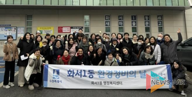 뉴스팍 배상미 기자 | 수원시 팔달구 화서1동은 지난 15일, 통장협의회 등 단체원 및 주민들과 함께 2026년 설맞이 관내 환경정비를 실시했다고 밝혔다.