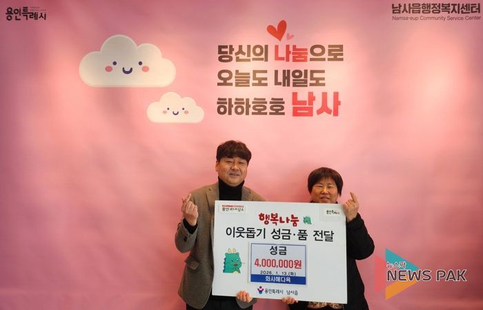 처인구 남사읍은 13일 화사해다육에서 성금 400만원을 기탁했다고 밝혔다.