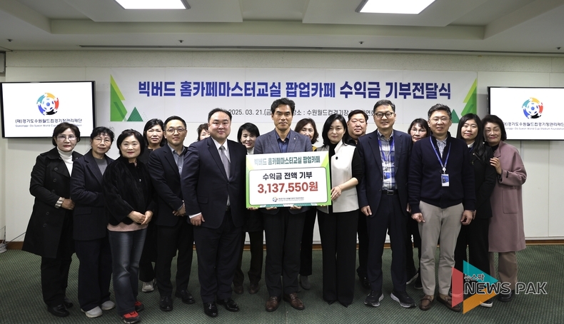 뉴스팍 배상미 기자 | 경기도수원월드컵경기장관리재단(이하 재단)이 사회공헌사업의 일환으로 진행된 ‘빅버드 홈카페마스터교실 수료생 팝업카페’의 운영 수익금 전액을 취약계층에 기부했다.