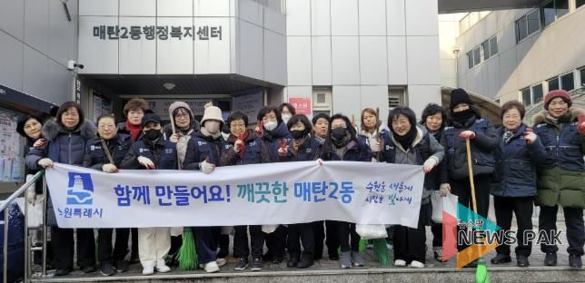뉴스팍 배상미 기자 | 지난 19일 영통구 매탄2동 통장협의회는 겨울철 강설로 인한 주민 불편을 최소화하고 보행 안전을 확보하기 위해 관내 주요 보행로와 학교 주변을 중심으로 제설 작업을 실시했다.