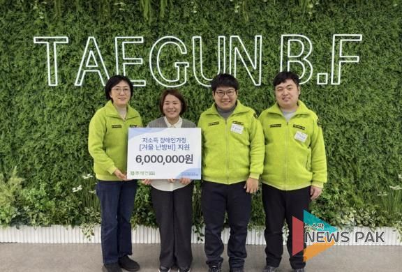 ㈜ 태건비에프 김만석 대표는 “추운 겨울철 난방비 부담으로 어려움을 겪는 장애인 가정에 조금이나마 도움이 되길 바라는 마음으로 후원을 하게 됐다”며 “앞으로도 지역사회와 함께하는 나눔 활동을 이어나가겠다”고 전했다.