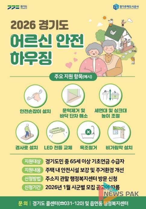 뉴스팍 배상미 기자 | 경기도가 고령자들의 안전한 거주를 위한 ‘2026 어르신 안전 하우징’ 사업을 추진한다.