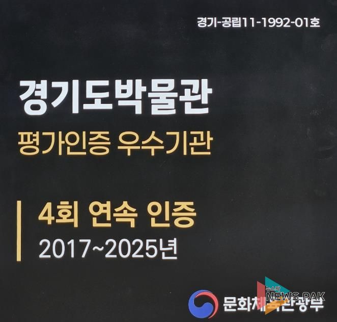 뉴스팍 배상미 기자 | 경기문화재단 경기도박물관은 문화체육관광부가 시행하는 ‘공립박물관 평가인증제’에서 2025년 9월 현장평가를 포함한 평가 결과, 2017년‧2019년‧2022년에 이어 2025년까지 ▲4회 연속 인증을 획득하는 성과를 거두었다.