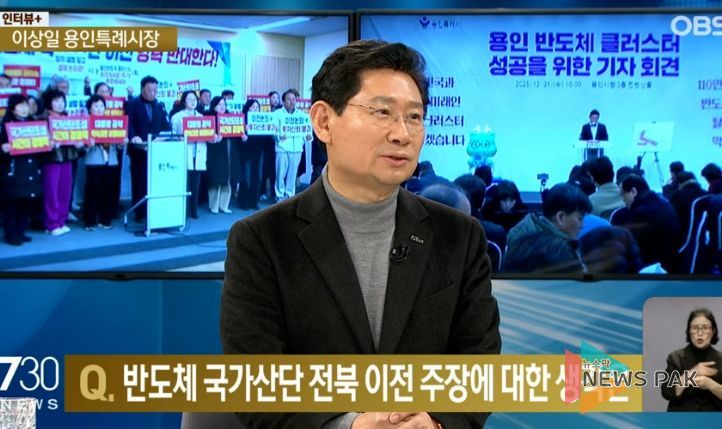 뉴스팍 배상미 기자 | 이상일 용인특례시장은 20일 저녁 OBS ‘뉴스 730’에 출연해 반도체 국가산단 지방이전에 대해 “새만금에는 새만금에 맞는 신규 투자를 하는 게 옳다. 용인 반도체 국가산단을 국가전략산업의 미래 경쟁력을 키우는 관점에서 봤으면 한다”고 했다.