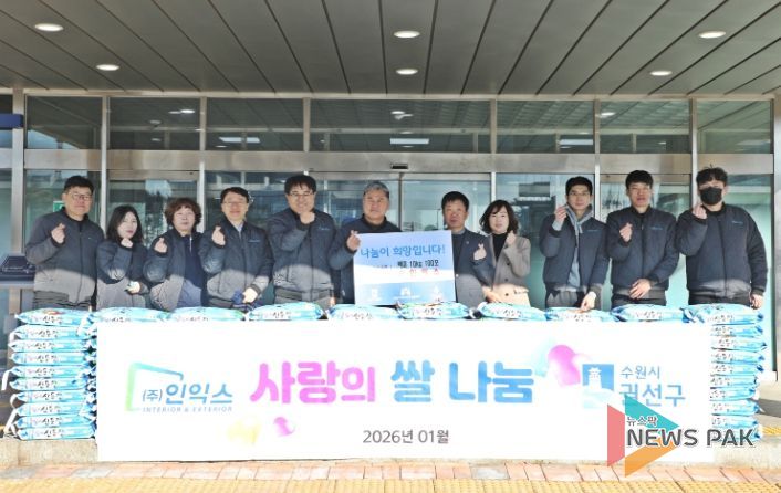 뉴스팍 배상미 기자 | 수원시 권선구는 21일 ㈜인익스에서 설 명절을 맞이하여 후원한 백미(10kg) 100포에 대한 전달식을 진행했다.