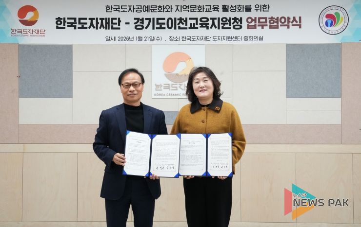 뉴스팍 배상미 기자 | 한국도자재단과 경기도이천교육지원청이 21일 한국도자재단 도자지원센터에서 도자공예문화 진흥과 지역문화교육 활성화를 위한 업무협약을 체결했다.