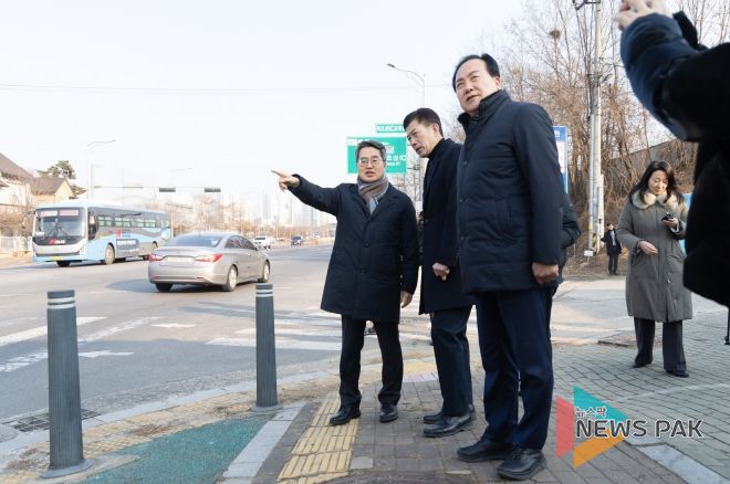 김 지사는 이권재 오산시장, 관계 공무원 등과 함께 주변 도로 여건을 직접 살피며 북오산IC 진입로 정체 원인과 개선 방안을 확인했다.