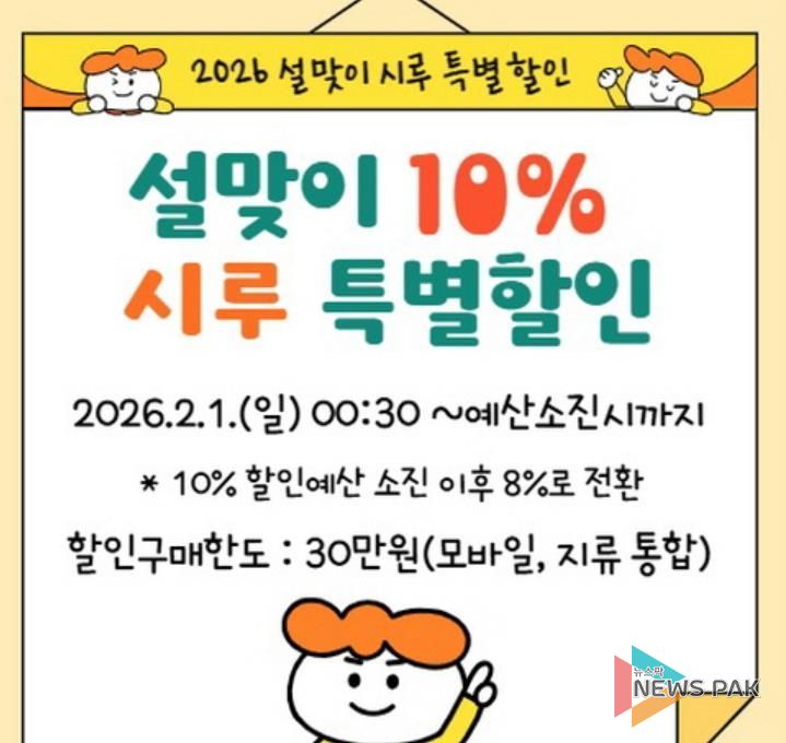 시 관계자는 “이번 특별할인을 통해 명절을 앞둔 시민들의 가계 부담을 완화하는 동시에, 경기침체로 어려움을 겪고 있는 지역 소상공인과 골목상권에 실질적인 도움이 될 것으로 기대하고 있다”라고 말했다.