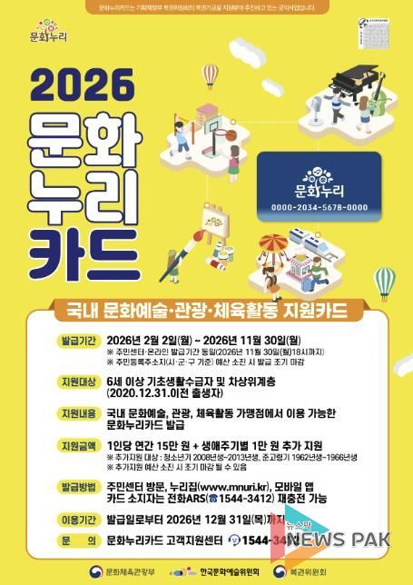 이와 함께 군포시는 대상자들이 문화누리카드 혜택을 놓치지 않도록 복지시설과 요양원 등 현장을 직접 방문해 안내하고 신청을 돕는 등 발로 뛰는 지원을 이어갈 예정이다.