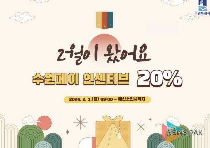 뉴스팍 배상미 기자 | 수원특례시가 설 명절을 맞아 2월 수원페이 인센티브를 20%로 확대한다.