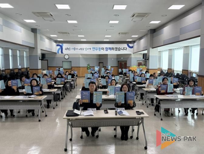 뉴스팍 배상미 기자 | 수원시 장안구 연무동은 지난 27일 통장협의회 회의를 개최하고 ‘수원 새빛 생활비 패키지’와 ‘시민의 민원함’ 홍보 및 안내 방안을 논의했다.