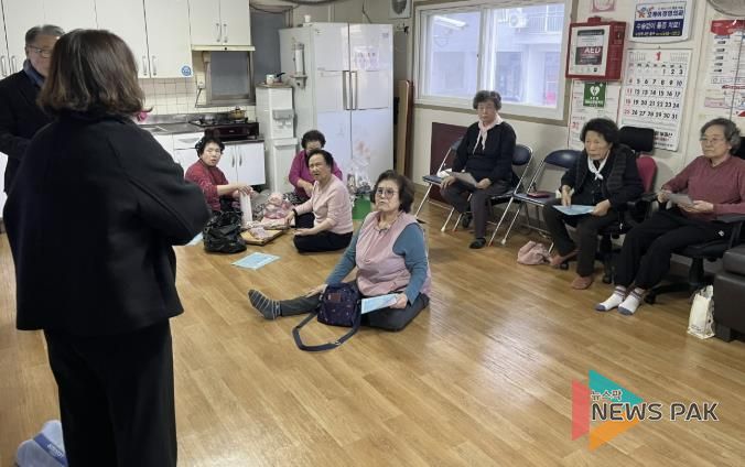 뉴스팍 배상미 기자 | 수원시 팔달구 매교동에서는 지난 27일부터 28일까지 관내 9개 경로당을 방문하여 어르신들을 대상으로 ‘새빛 생활비 패키지’ 사업을 홍보했다고 밝혔다.