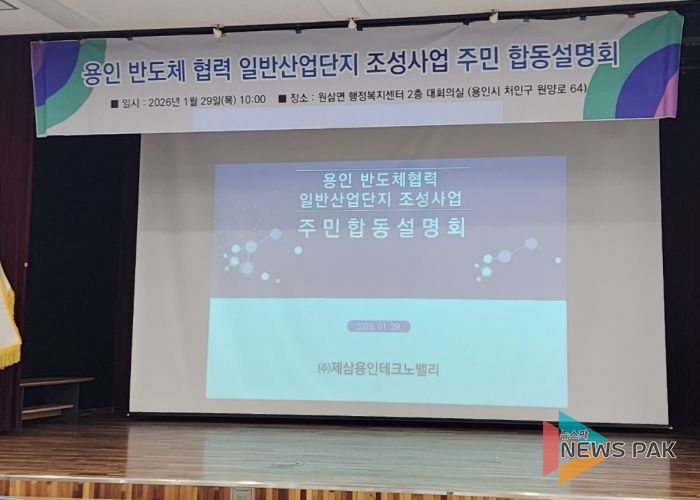 뉴스팍 배상미 기자 | 용인도시공사가 지분 참여한 ㈜제삼용인테크노밸리는 29일 처인구 원삼면 행정복지센터 대회의실에서 ‘용인 반도체협력 일반산업단지’ 조성을 위한 합동설명회를 개최했다고 밝혔다.