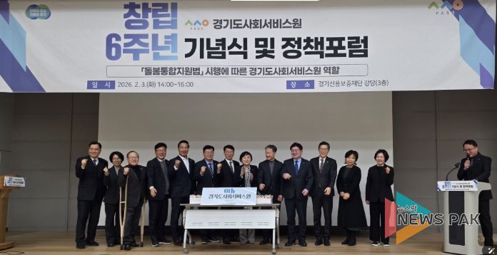 뉴스팍 배상미 기자 | 경기도의회 보건복지위원회 이선구 위원장(더불어민주당, 부천2)은 3일, 경기신용보증재단 강당에서 열린 경기도사회서비스원 창립 6주년 기념행사 및 정책포럼에 참석해 축사를 통해 통합돌봄 체계에서 사회서비스원의 역할과 공공 책임의 중요성을 강조했다. 이날 행사에는 경기도의회 보건복지위원회 소속 김용성(더불어민주당, 광명4)·박재용(더불어민주당, 비례)·정경자(국민의힘, 비례)·최만식(더불어민주당, 성남2) 의원도 함께해 의미를 더했다.