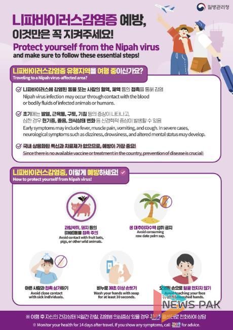 뉴스팍 배상미 기자 | 시흥시는 설 연휴를 맞아 니파바이러스 발생이 보고된 국가로 여행을 계획하고 있는 시민들에게 각별한 주의를 당부했다.