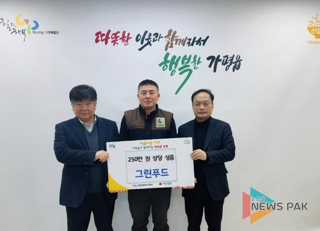 뉴스팍 배상미 기자 | 농업회사법인 그린푸드 주식회사는 최근 가평군 가평읍 행정복지센터를 방문해 250만 원 상당의 성품을 전달했다. 이번에 전달된 성품은 그린푸드가 납품하는 영양 유기농 식품으로 이유식을 제조하는 ㈜베베쿡에서 지원한 것이다.