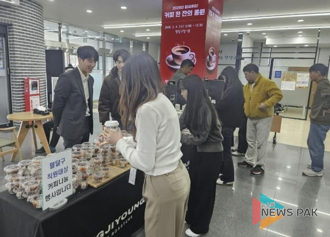 뉴스팍 배상미 기자 | 수원청년상인회는 지난 4일, ‘정지영 커피’와 함께 팔달구청을 방문하여 공직자들을 격려하고, 감사의 뜻을 전하기 위해 따뜻한 커피를 제공했다고 밝혔다.
