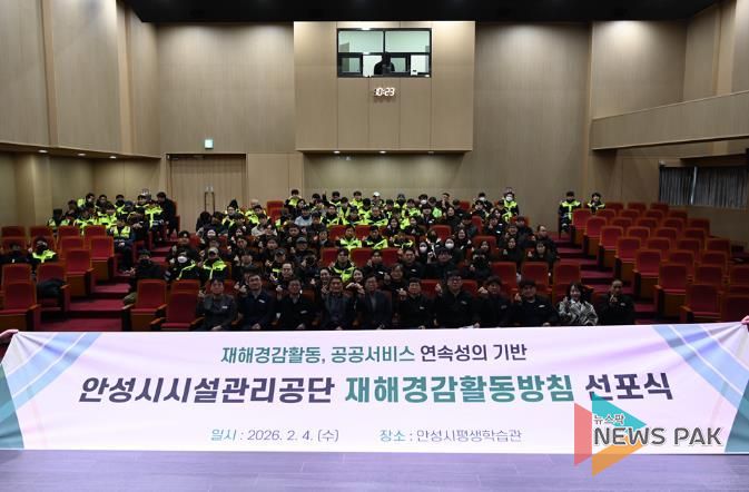 뉴스팍 배상미 기자 | 안성시시설관리공단은 지난 4일 안성시평생학습관에서 전 임직원이 참여한 가운데 재해경감활동방침 선포식을 실시했다.