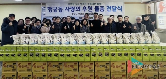 뉴스팍 배상미 기자 | 수원시 팔달구 행궁동은 지난 6일 설 명절을 맞아 ‘행궁동 사랑의 후원 물품 전달식’을 개최했다. 이번 전달식에는 설 명절을 앞두고 행궁동 취약계층을 위해 후원 물품을 기부한 행궁동 주민자치회를 비롯한 단체장들과 후원자들이 참석해 이웃 나눔의 의미를 함께 했다.