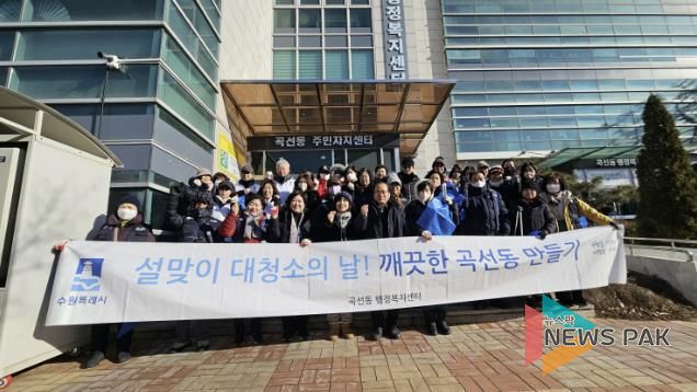 뉴스팍 배상미 기자 | 권선구 곡선동은 지난 9일 이번 설연휴를 앞두고 동 단체 회원들과 동 직원들이 합동하여 설맞이 대청소를 진행했다.