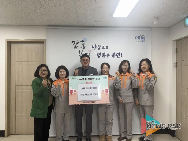 북면 여성의용소방대는 북면의 취약계층을 위해 꾸준히 기부하고 있으며, 소방대 활동뿐만 아니라 복지사각지대에 놓인 주민들을 발굴해 도움을 주는 등 다양한 봉사 활동을 이어가고 있다.