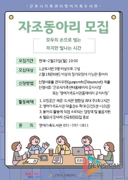 뉴스팍 배상미 기자 | 군포시가족센터 영어가족도서관(관장 박성희)에서 2026년 자조동아리를 모집한다.