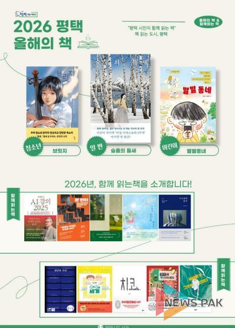 뉴스팍 이소율 기자 | 평택시의 대표 시민 독서 운동인 '평택, 책을 택하다'에서 2026년 ‘올해의 책’을 선정했다. 시민공모를 통해 추천된 224권의 도서 중 시민도서선정단의 4차례 토론을 거쳐 '슬픔의 틈새/이금이 지음, 사계절', '브릿지/문경민 지음, 우리학교', '별별동네/이묘신 지음, 천개의바람' 3권을 확정했다.