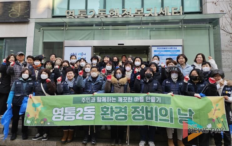 뉴스팍 배상미 기자 | 수원시 영통구 영통2동은 지난 12일 행정복지센터에서 신동 원룸단지와 망포 음식특화거리에 이르기까지, 주민들의 쾌적한 설 연휴를 위해 환경정비 활동을 추진했다.