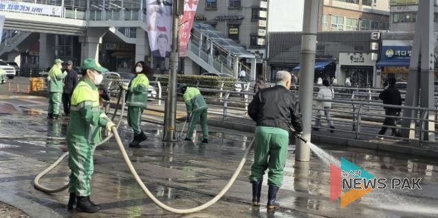 뉴스팍 배상미 기자 | 수원시 팔달구는 지난 12일, 최근 지속된 영하권 날씨로 물청소가 중단됐던 수원역 로데오거리 일대에 대해 환경정비 활동을 실시했다고 밝혔다.