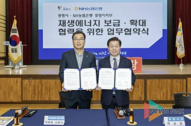 시는 13일 시청 대회의실에서 NH농협은행 광명시지부와 ‘재생에너지 보급·확대 및 사회공헌 연계 업무협약’을 체결했다.