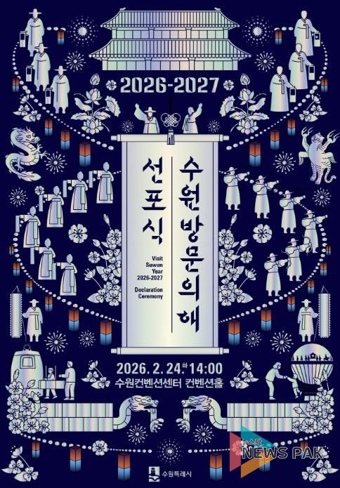 뉴스팍 배상미 기자 | ‘2026-2027 수원 방문의 해’ 선포식이 2월 24일 오후 2시 수원컨벤션센터 컨벤션홀에서 열린다.
