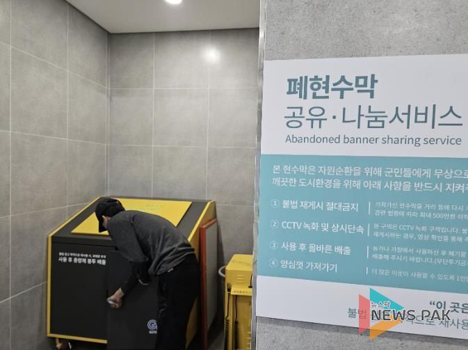 군은 불법 광고 재사용과 무단 투기를 막기 위한 장치도 마련했다. 제공되는 현수막에는 재활용품임을 알리는 스탬프를 날인하고, 특정인의 독점을 방지하기 위해 1인당 하루 10매 이내로 가져가도록 안내한다. 보관함 옆에는 양심 관리대장을 비치해 주민이 날짜와 용도를 자율적으로 기록하도록 했다.