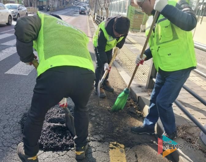 뉴스팍 배상미 기자 | 수원시 팔달구는 해빙기를 맞아 도로 이용자의 안전을 위협하는 ‘포트홀(도로 파임)’을 신속하게 정비하기 위해 오는 3월 31일까지 ‘해빙기 포트홀 보수 전담반’을 집중 운영한다고 밝혔다.