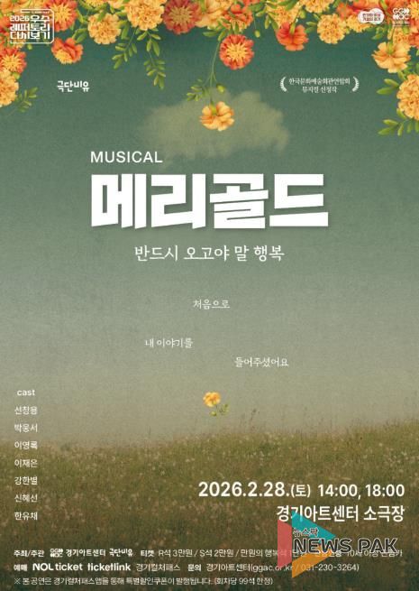 뉴스팍 배상미 기자 | 경기도와 경기아트센터는 오는 28일 오후 2시와 6시 경기아트센터 소극장에서 뮤지컬 ‘메리골드’ 공연을 선보인다.