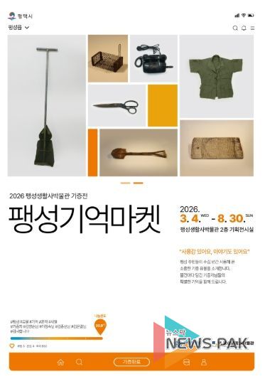 뉴스팍 이소율 기자 | 팽성생활사박물관은 2026년 3월 4일부터 8월 30일까지 팽성생활사박물관 기획전시실에서 2026년 상반기 기증전 '팽성기억마켓 – 사용감 있어요, 이야기도 있어요'를 개최한다.