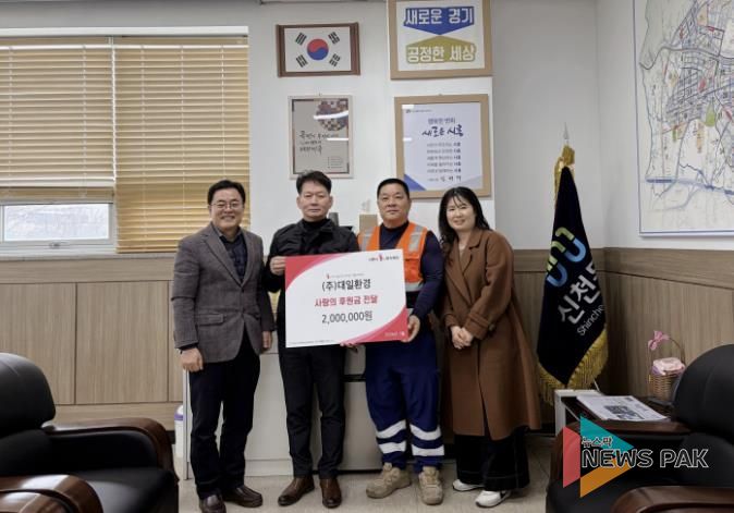 뉴스팍 배상미 기자 | 시흥시 신천동 행정복지센터는 지난 3월 5일 ㈜대일환경으로부터 취약계층 학생 교육비 지원을 위한 후원금 200만 원을 전달받았다.