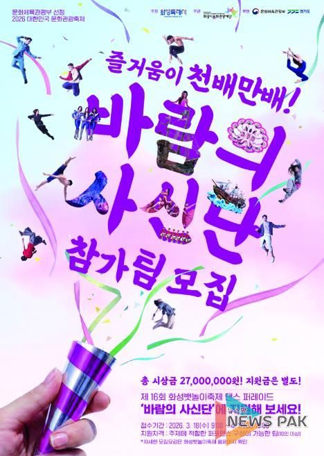 뉴스팍 류은정 기자 | (재)화성시문화관광재단은 제16회 화성 뱃놀이 축제의 주인공이 될 ‘바람의 사신단 댄스 퍼레이드‘경연 참가팀을 모집한다.