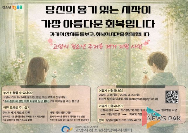 뉴스팍 배상미 기자 | 고양시청소년재단 고양시청소년상담복지센터는 자살·자해 흔적(주저흔)으로 인해 심리적 위축과 사회생활의 어려움을 겪고 있는 청소년을 지원하기 위해 ‘주저흔(자해 흔적) 제거 지원 사업’을 추진한다고 6일 밝혔다.