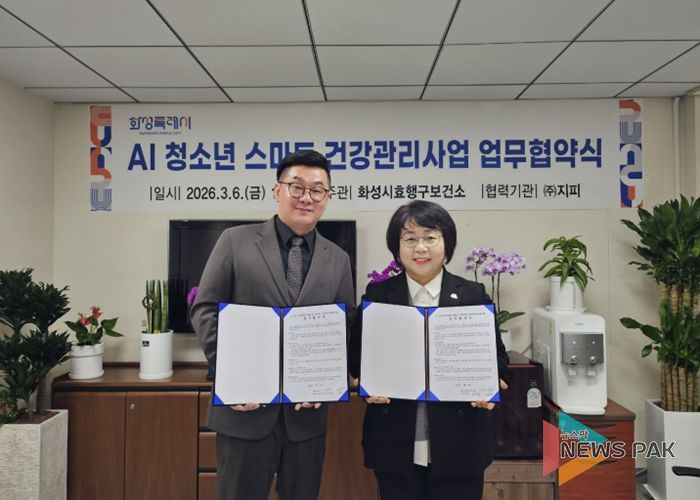 뉴스팍 류은정 기자 | 화성특례시 효행구보건소는 6일 오후 2시, AI 성장예측 시스템 운영기관과 ‘ AI 청소년 스마트 건강관리사업’ 추진을 위한 업무협약을 체결했다.