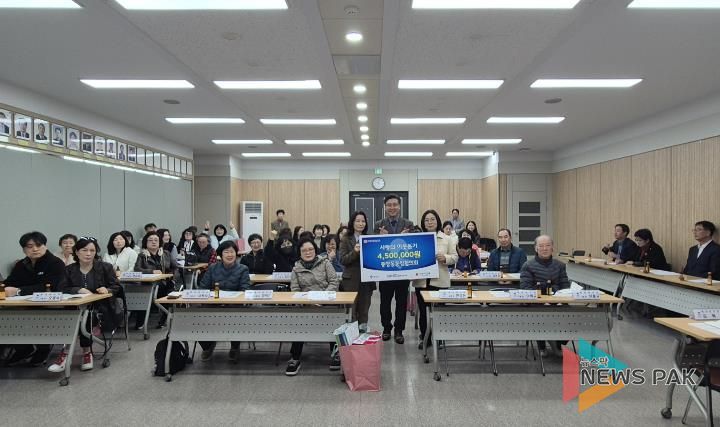 뉴스팍 이소율 기자 | 평택시 중앙동 통장협의회는 지난 5일 중앙동 행정복지센터에서 지역 저소득층 청소년들을 위한 ‘희망꿈나무 용돈지원 사업’을 위해 후원금 450만 원을 전달했다.