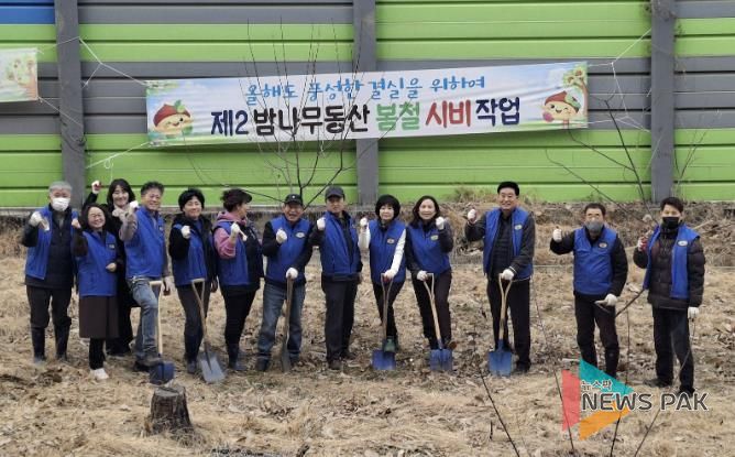 뉴스팍 배상미 기자 | 수원시 장안구 율천동 주민자치회와 주민들이 지난 9일, 성균관대역 인근 불법 경작지에 조성한 ‘제2의 밤나무 동산’ 정비 작업을 실시했다.