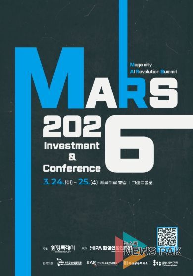뉴스팍 류은정 기자 | 화성특례시가 주최하고 화성산업진흥원이 주관하는 ‘MARS 2026 투자유치&컨퍼런스’가 오는 3월 24일부터 이틀간 화성 푸르미르 호텔에서 개최된다.